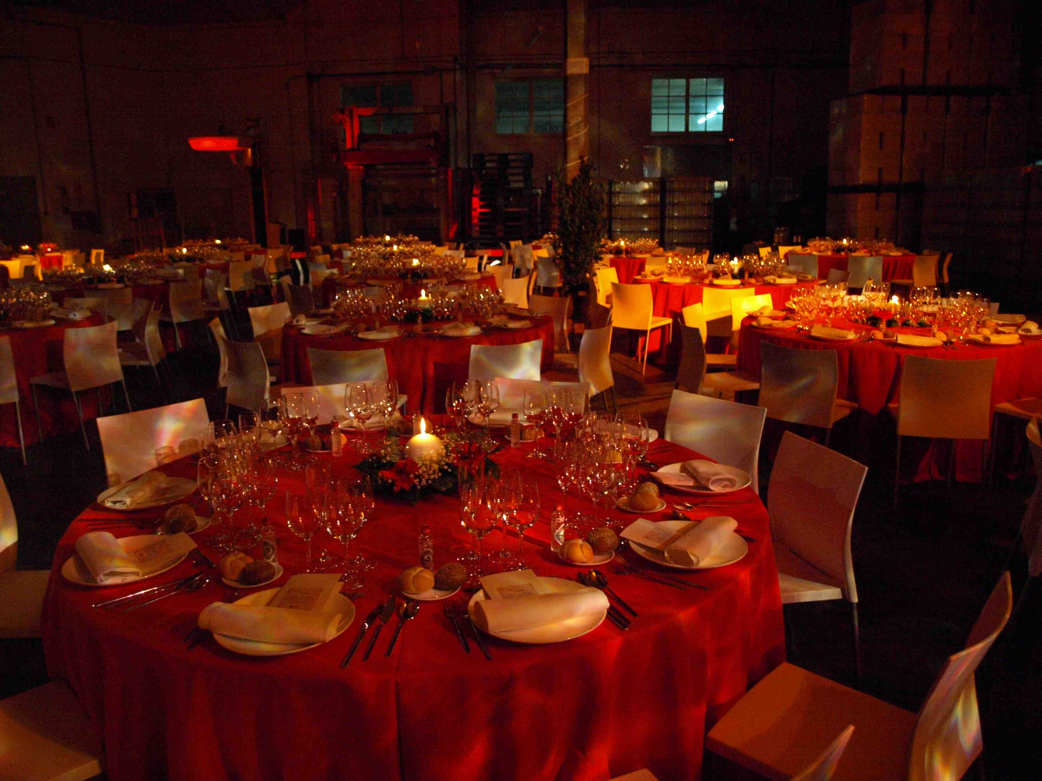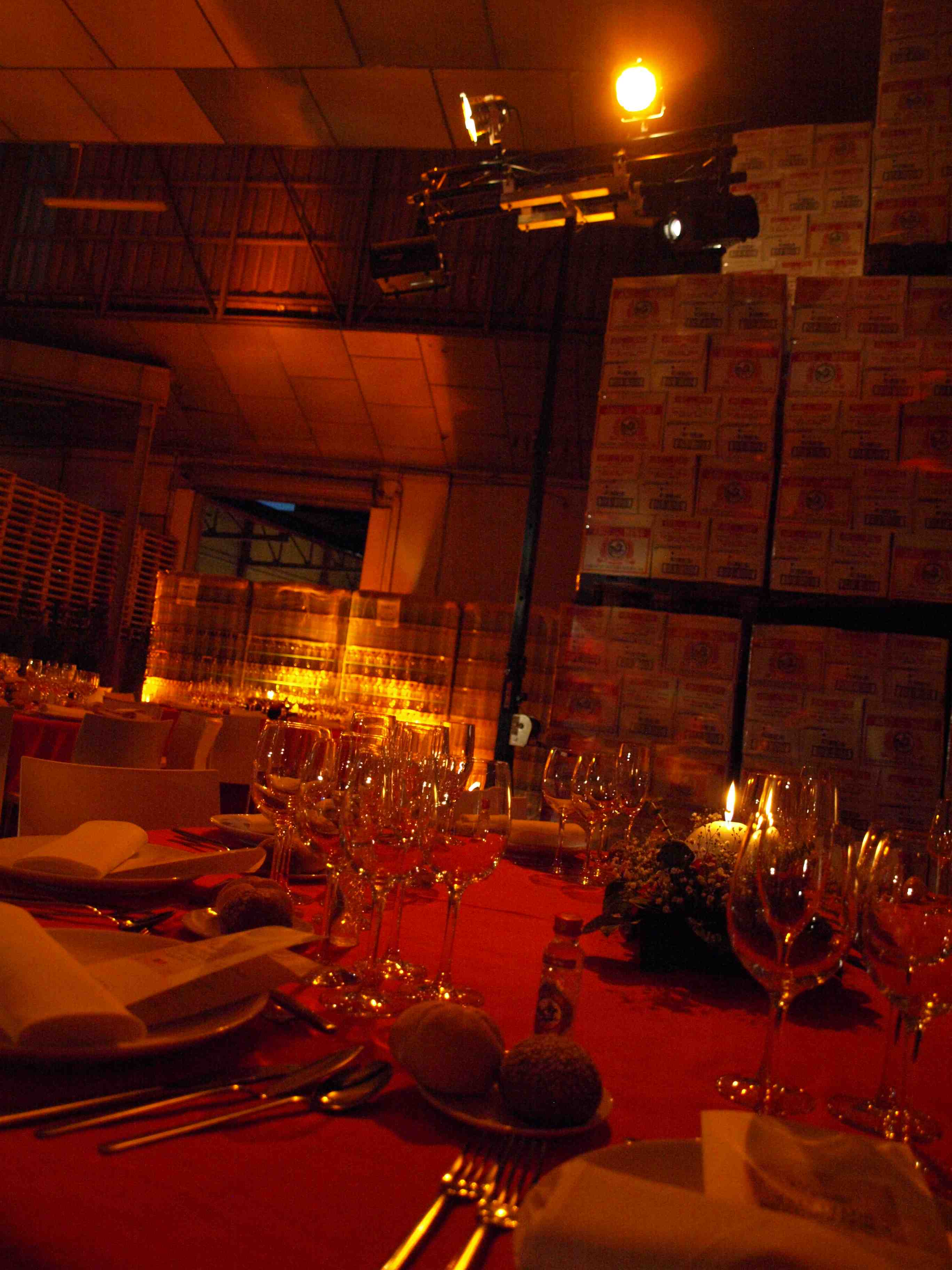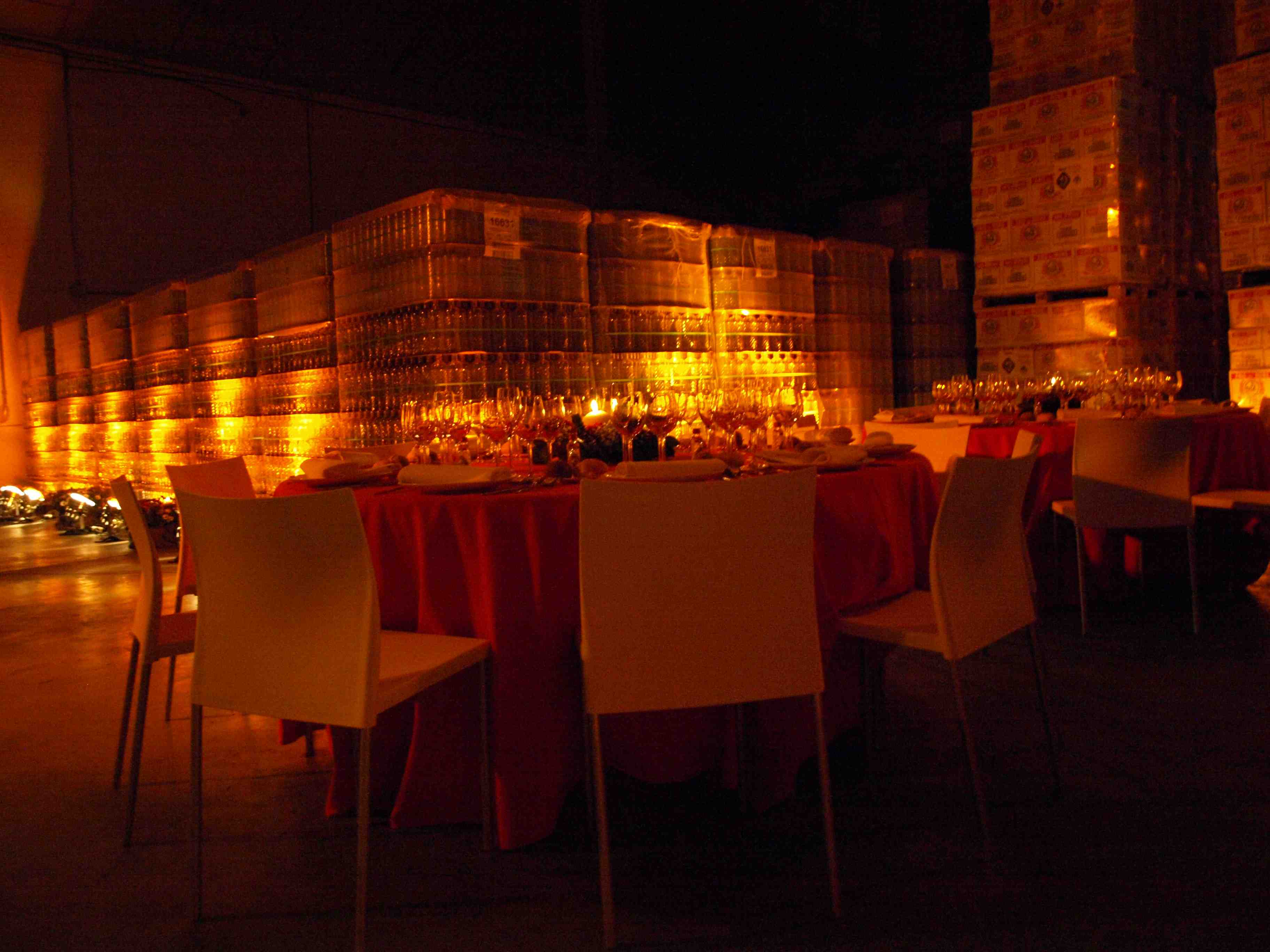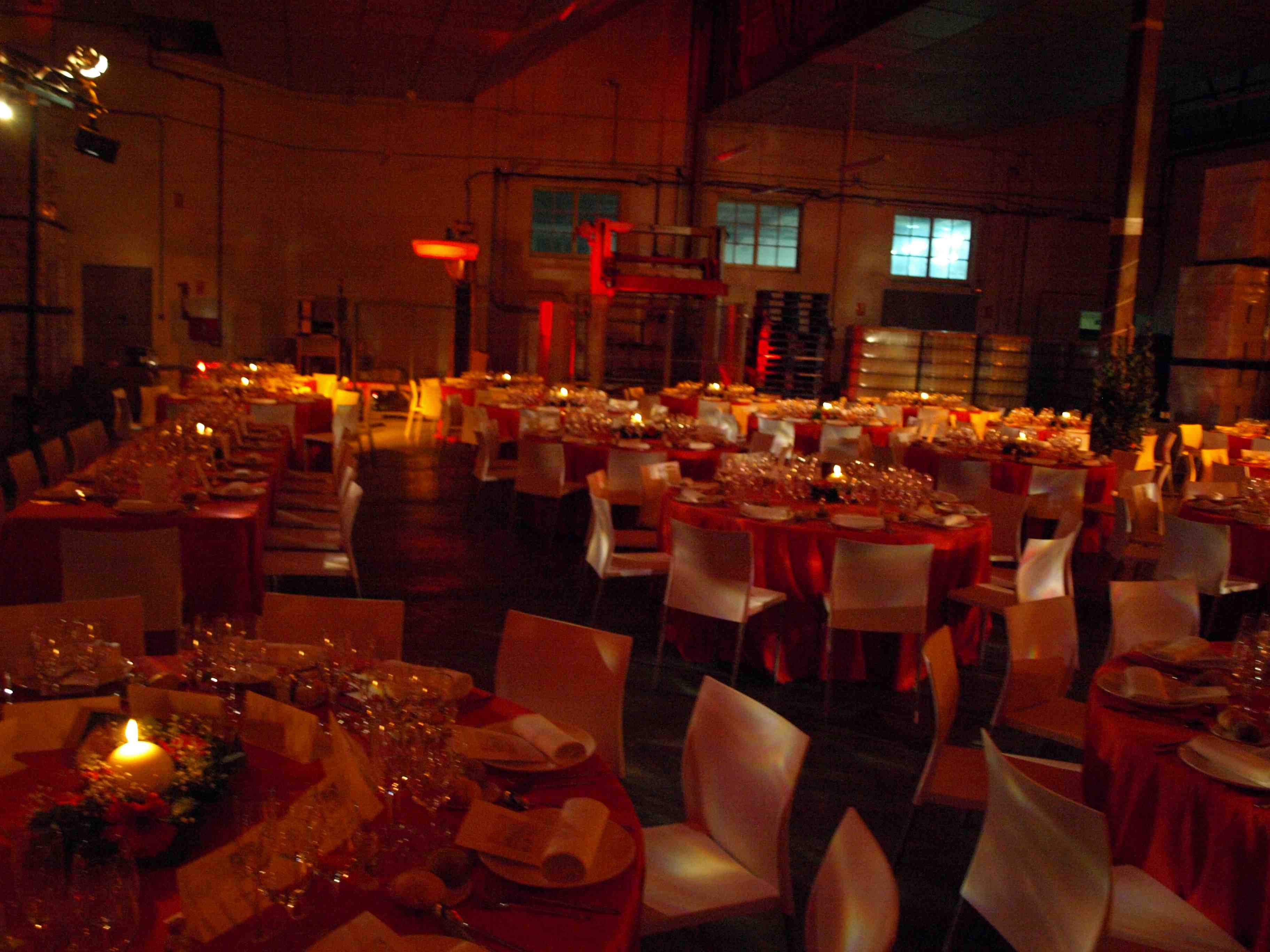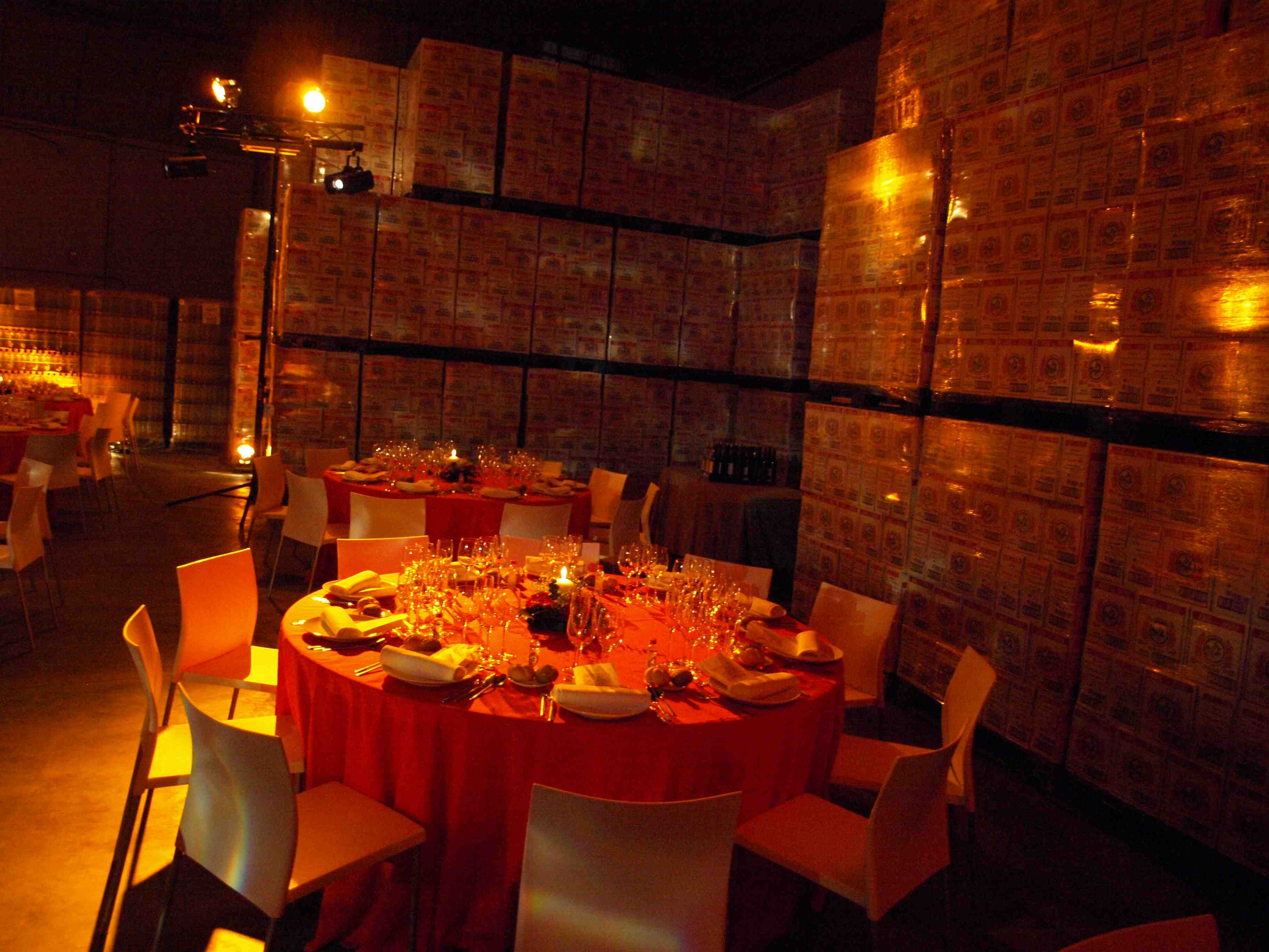 Evento: Cóctel en Patio de carga/descarga de la fábrica y cena de gala en el área de almacén de la Fábrica.