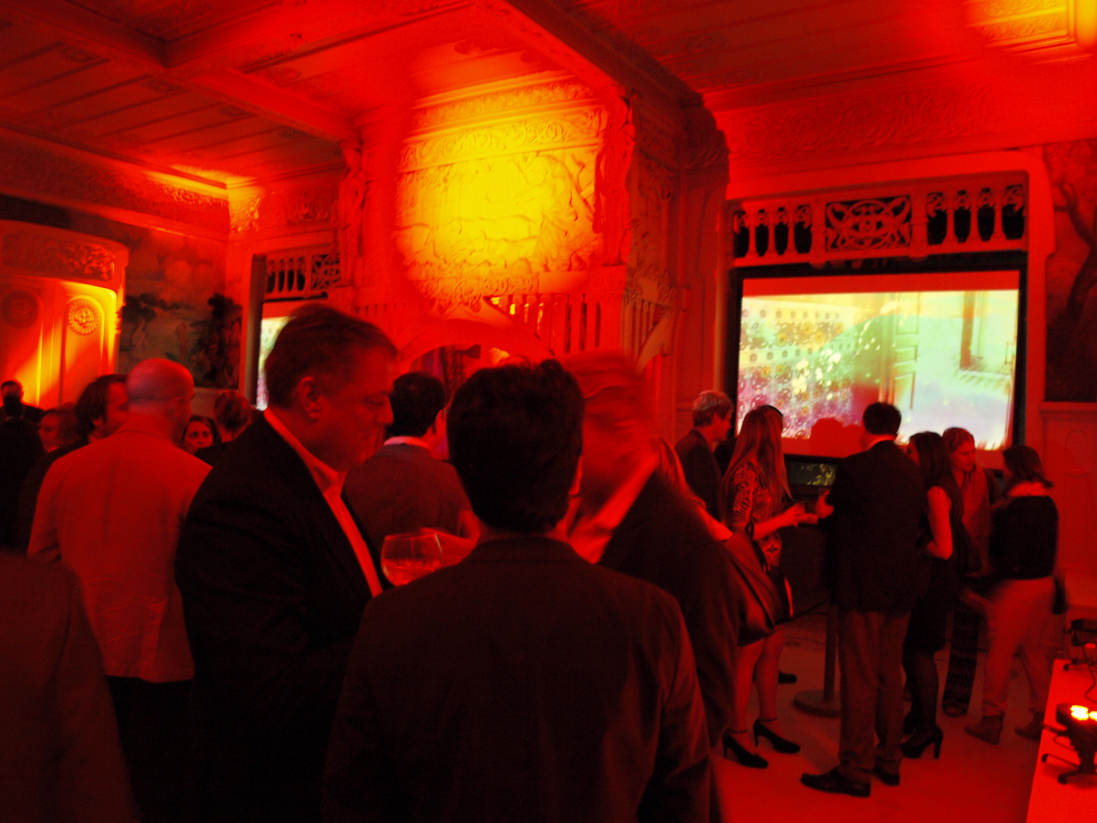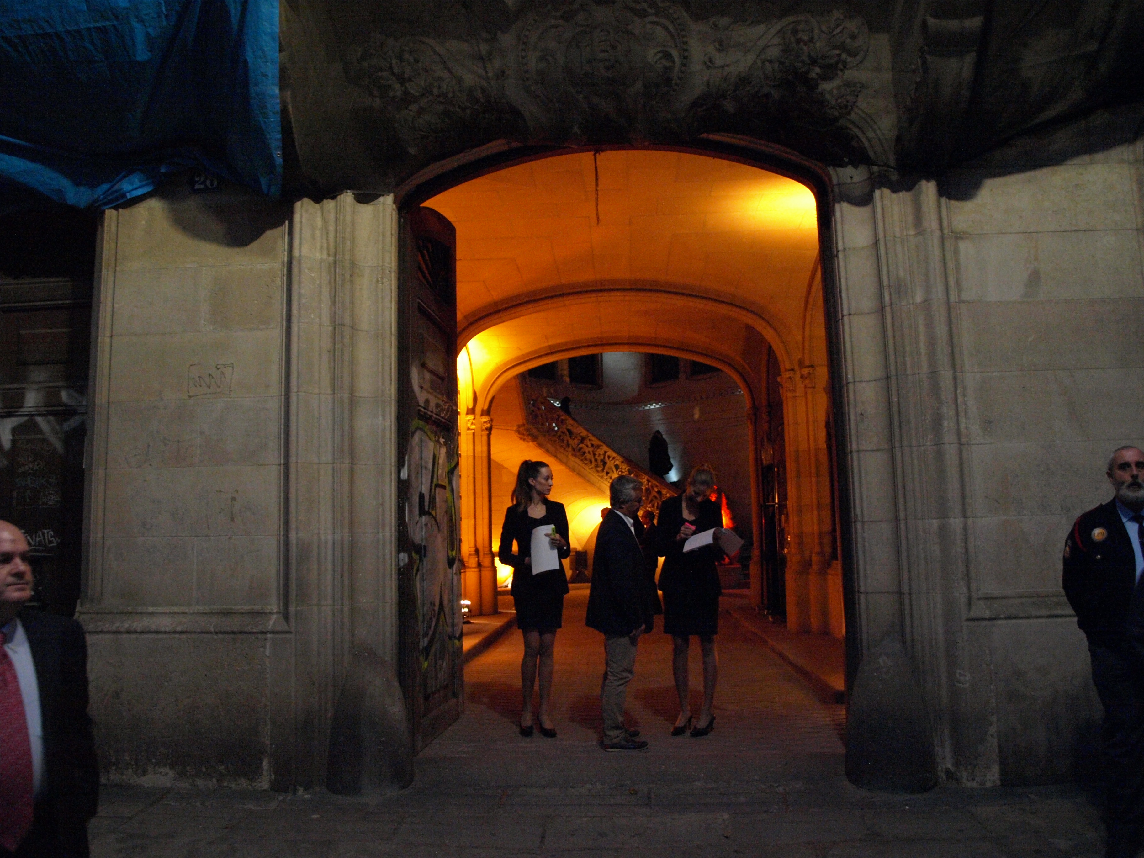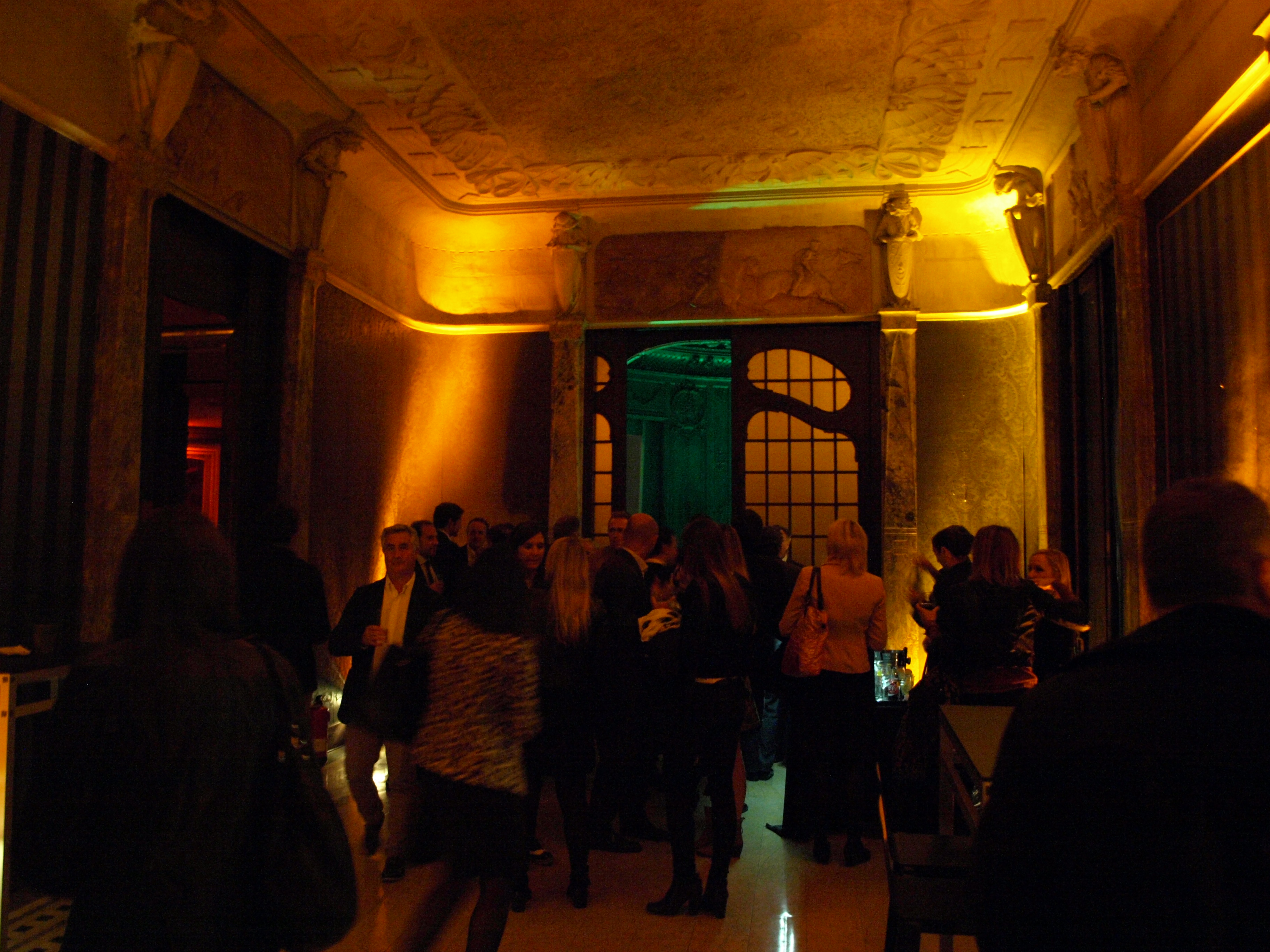 Instalación efímera de sonido e iluminación para enfatizar arquitectura en acto promocional residencial en Casa Burés Barcelona.