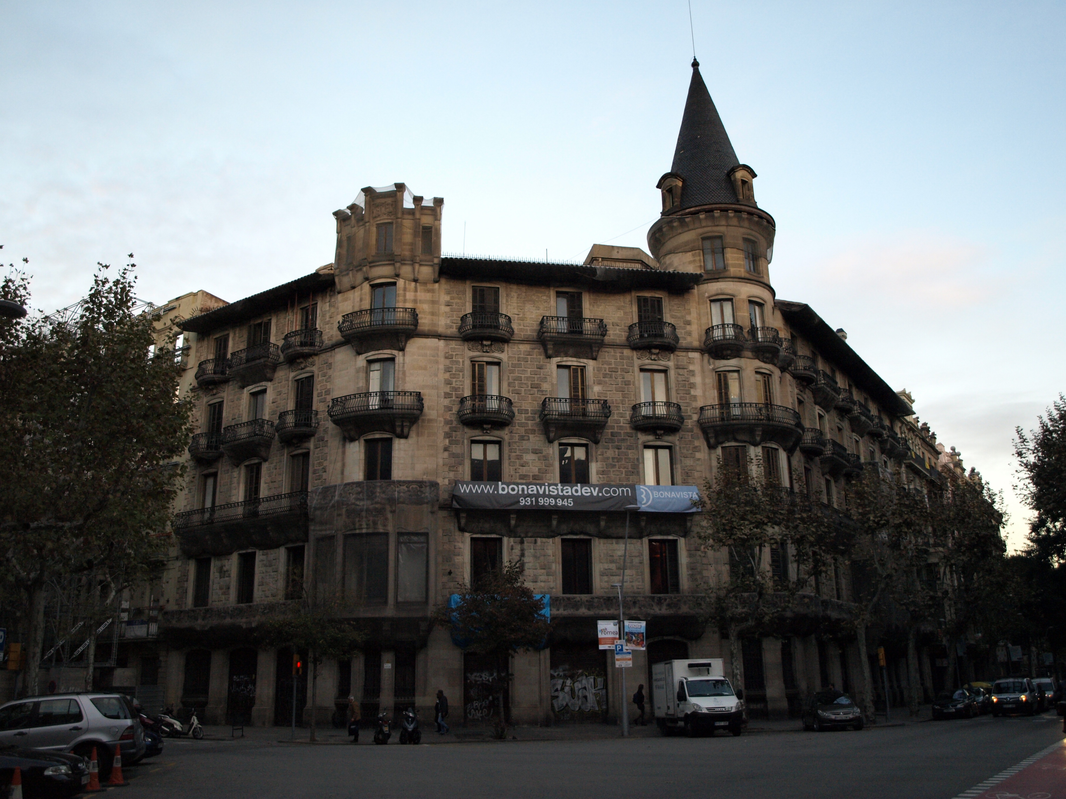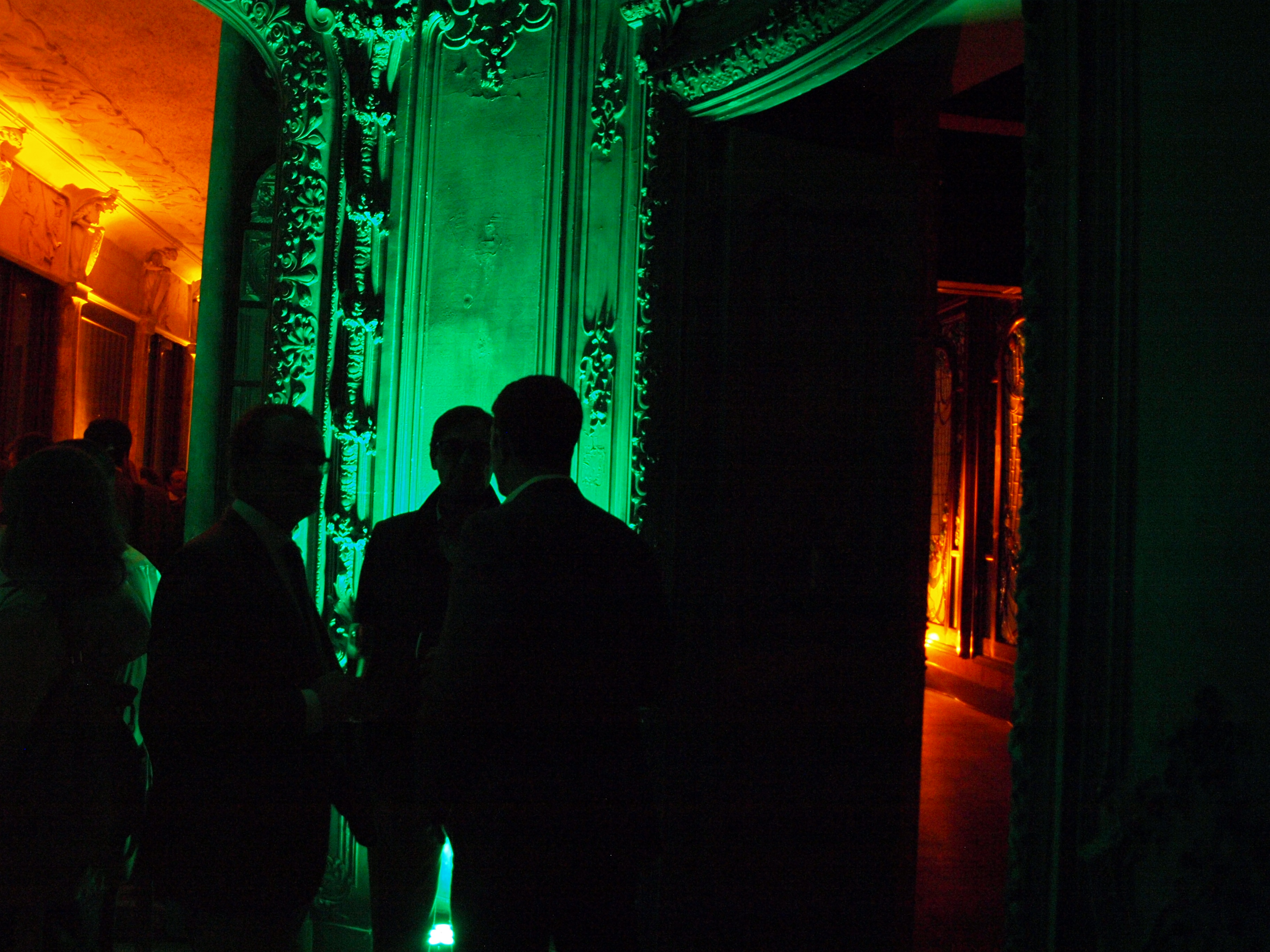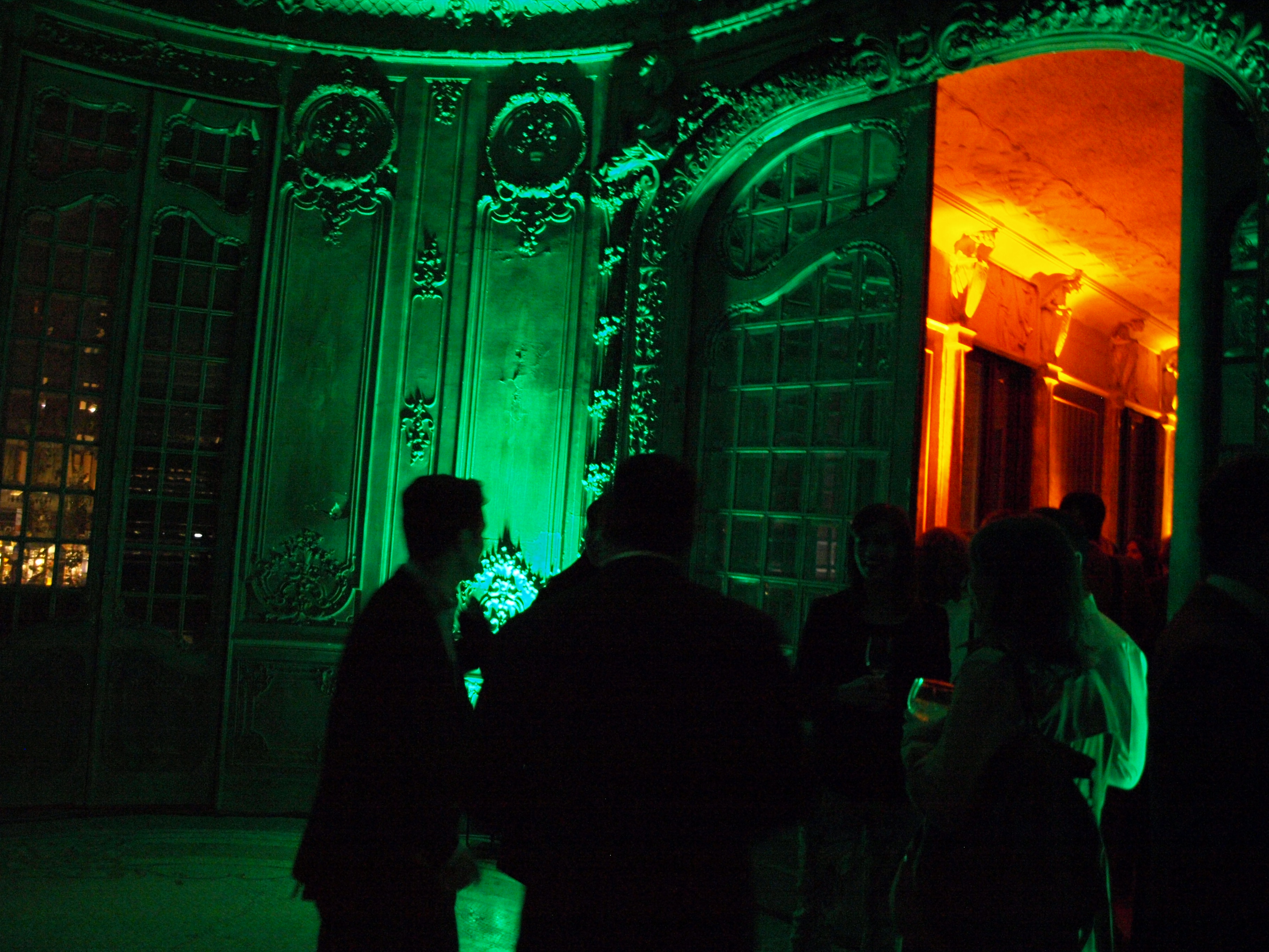 Instalación efímera de sonido e iluminación para enfatizar arquitectura en acto promocional residencial en Casa Burés Barcelona.