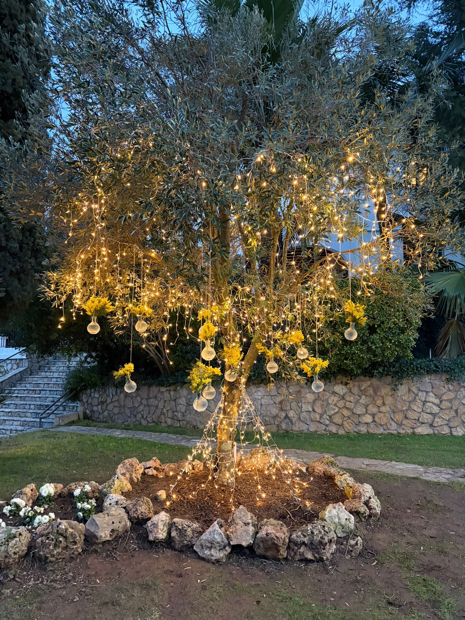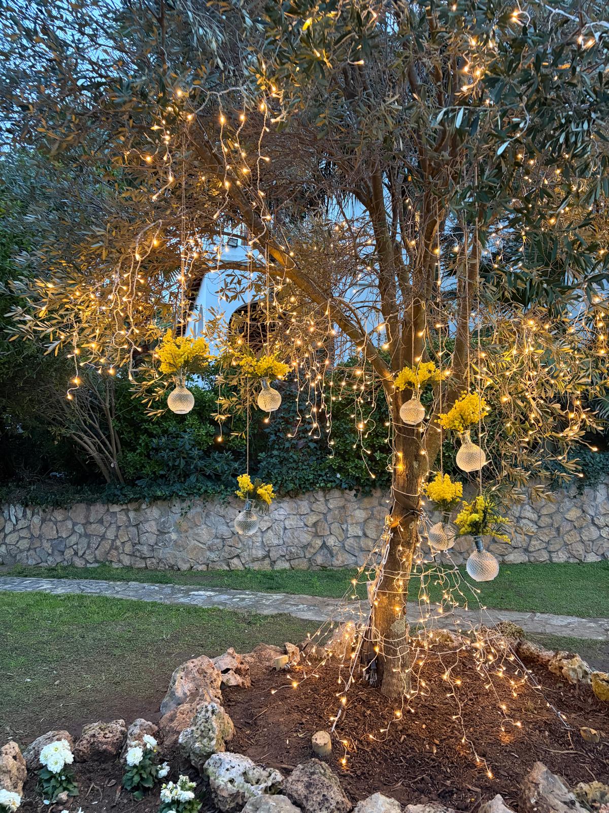 Our client, Bouquet Events (www.bouquetevents.cat) commissioned us to dress a young olive tree with magical lighting made up of small warm LEDs as a backdrop for the photographs that the lucky bride and groom take in such a beautiful place.