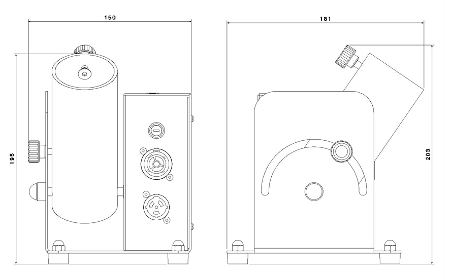 Shooting distances vary according to cartridge sizes, angle selected, and choice of consumable. Average distances vary between 4 and 12 m for stage confetti and 8 to 12 m for streamers. Triggering is triggered by a 230v / 50Hz electrical pulse (transformed into a 12V pulse) from a simple remote on / off or DMX control by using a single dmx channel switch or dimmer.