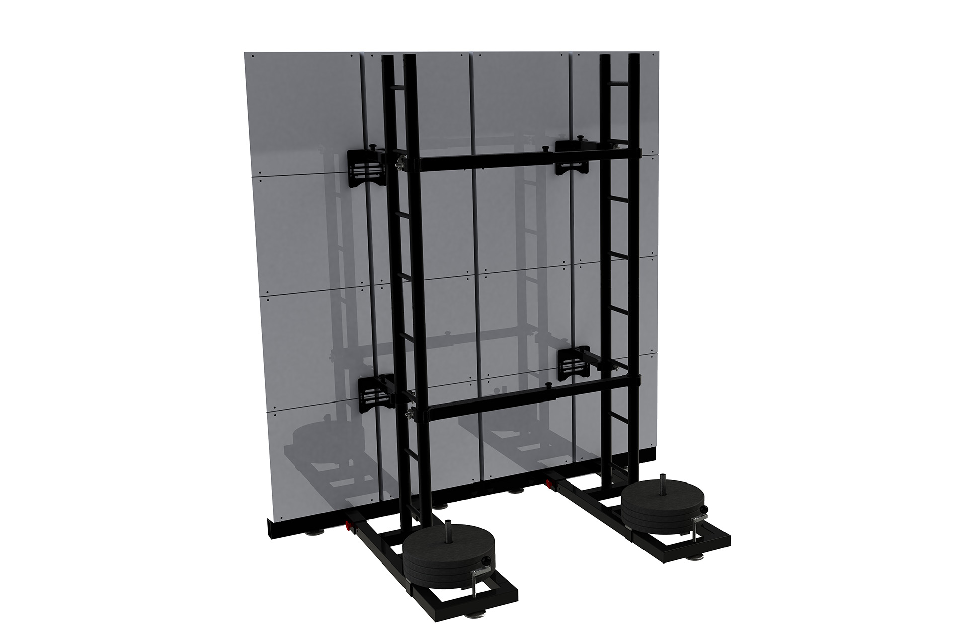 Soporte apilable para pantallas LED modulares. Cada módulo LWS-2 mide 2,11 m de alto x 1 m de ancho. La profundidad se puede regular entre 106 cm y 114 cm. Peso: 36 kg. Incluye: 1 base completa, 2 trusses LW-T1 y 2 brazos de soporte ajustables LW-S1.