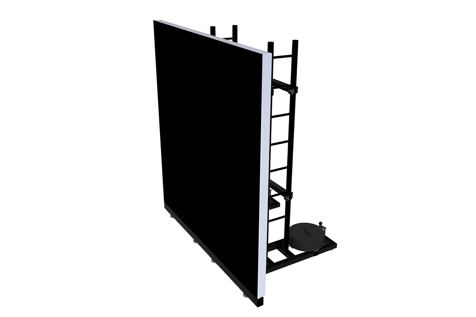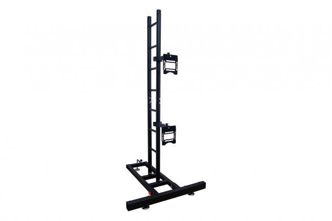 Stack support for modular LED screens. Each LWS-2 module measures 2.11m height x 1m width. The depth can be regulated between 106cm to 114cm. Weight: 36kg. Includes: 1 complete base,2 LW-T1 trusses, 2 LW-S1adjustable support arms