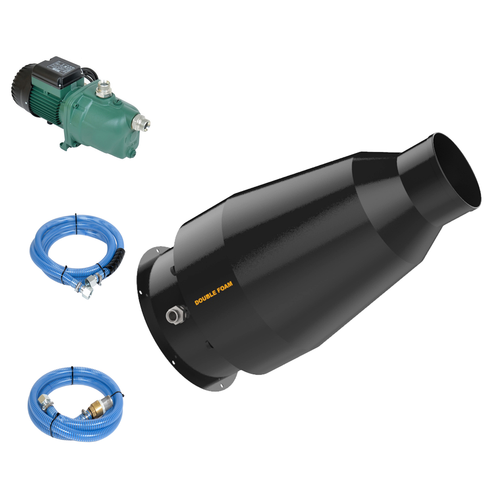 La máquina Power Double Foam 500 es una máquina de espuma que produce un alto volumen de espuma sintética a base de líquido tensioactivo concentrado activo y agua.