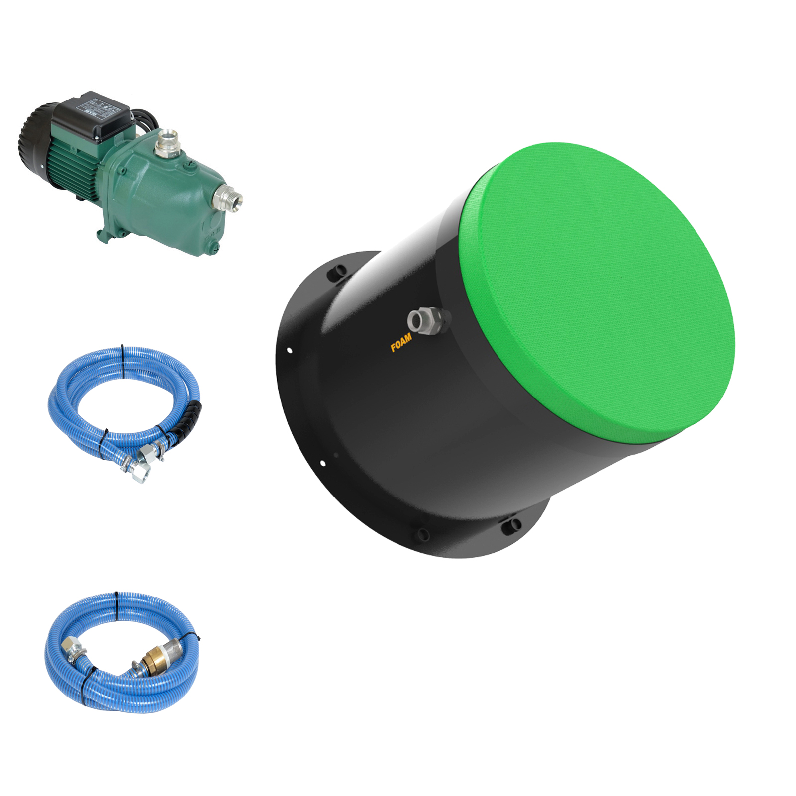 La máquina Power Foam 500 es una máquina que produce un volumen muy alto de espuma sintética a base de líquido tensioactivo concentrado activo y agua.